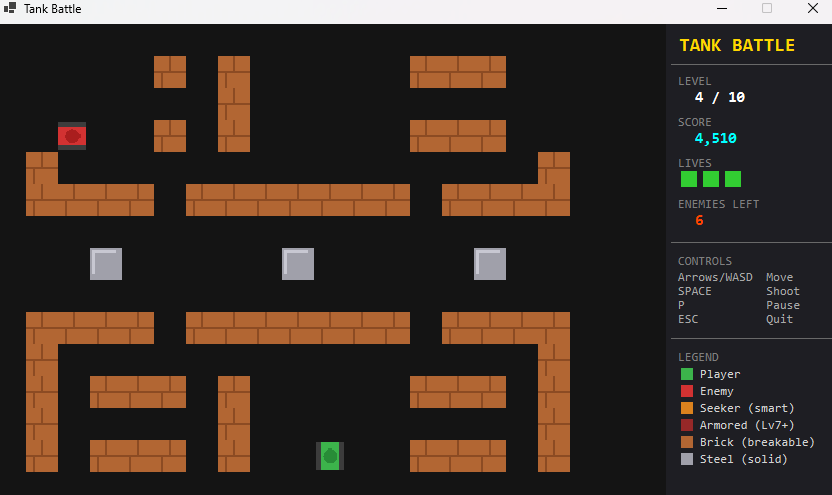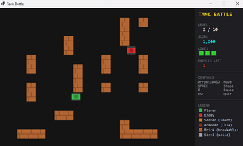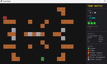 A fast-paced top-down tank shooter inspired by the classics. Navigate through 10 hand-crafted battlefields, destroy increasingly intelligent enemies, and blast through destructible terrain.